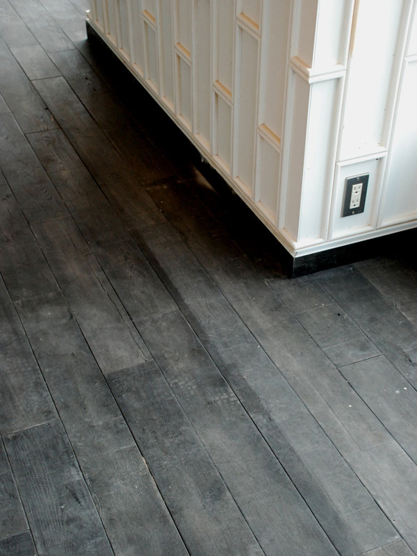 新材の床材をエイジング塗装で古びた雰囲気に仕上げてあります。