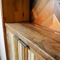 40m厚のオーク古材を家具の天板に使用。重厚な雰囲気が出ています。