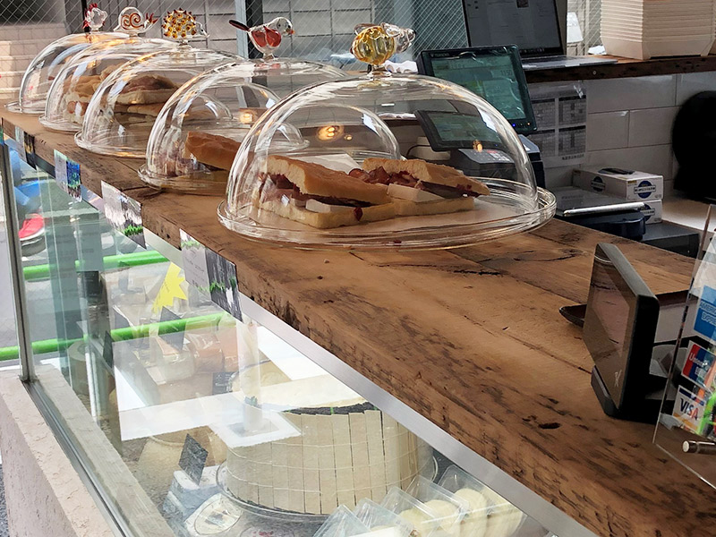 レジカウンターの天板にも同じ古材を使っていただきました。